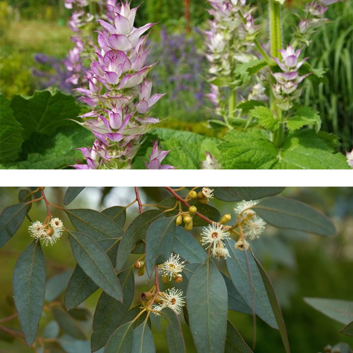 Clary Sage essential oil, botanically known as Salvia sclarea, is steam-distilled from the flowering tops and leaves of the clary sage plant, commonly grown in France. It features a sweet, herbaceous aroma with earthy notes, classified as a middle note.