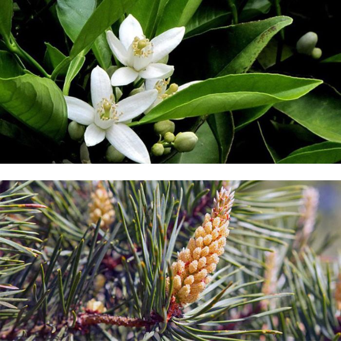 Pine essential oil, botanically known as Pinus sylvestris, is steam-distilled from the needles and twigs of the pine tree, commonly grown in Austria. It has a fresh, woody, and slightly balsamic aroma, classified as a middle note.