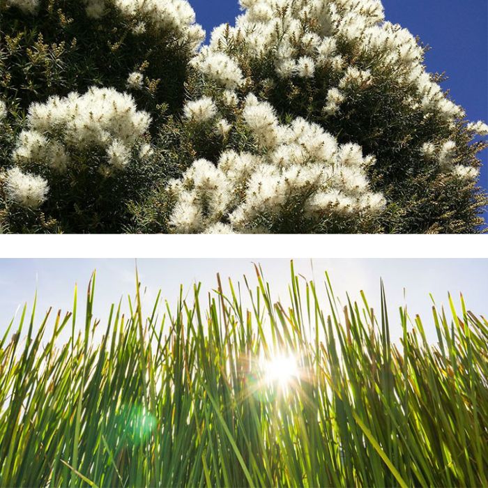 Kunzea essential oil, botanically known as Kunzea ambigua, is steam-distilled from the leaves and twigs of the kunzea plant, native to Australia. It has a fresh, clean, and slightly medicinal aroma, classified as a middle note.